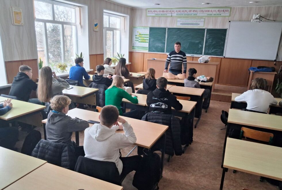 Під час занять школярі повторили основні алгоритми дій у разі виникнення надзвичайних ситуацій та отримали важливі практичні навички, що можуть урятувати життя. Фахівці розповіли про правила виклику екстреної медичної допомоги, послідовність дій під час надання допомоги постраждалим, а також продемонстрували прийоми зупинки кровотечі, проведення серцево-легеневої реанімації, накладання турнікету та пов’язок.