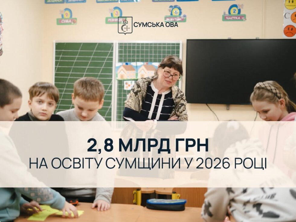 У 2026 році з державного бюджету місцевим бюджетам Сумської області передбачено понад 2,8 млрд гривень субвенції на підтримку та розвиток освітньої галузі.