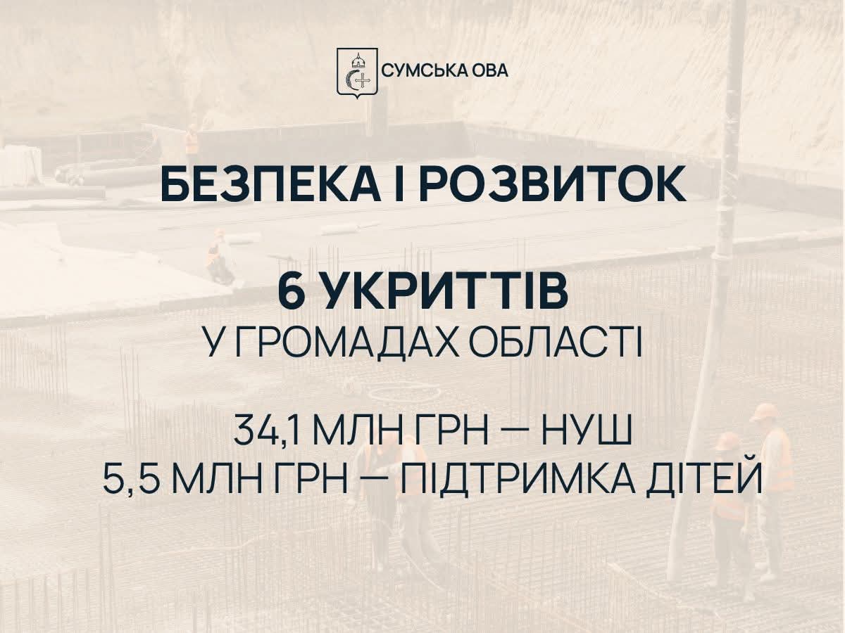 Майже 34,8 млн грн буде спрямовано на завершення облаштування укриттів у школах, роботи з яких розпочато у 2025 році. Йдеться про реалізацію 6 проєктів у Сумській, Кролевецькій та Шосткинській громадах. Це дозволить зробити навчання безпечнішим для дітей та педагогів.