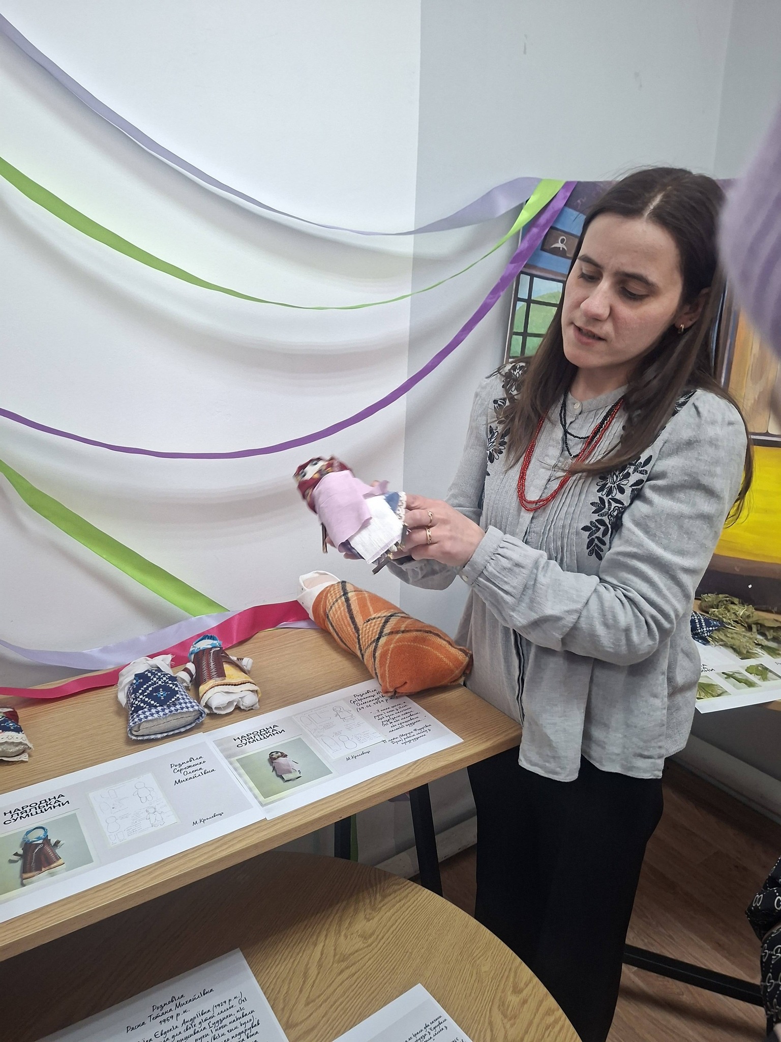 Особливого звучання виставці надала участь майстрині Наталії Кондратюк . Її хенд-мейд ляльки – це більше, ніж декоративні образи. У них тонко і глибоко переплелися сакральні символи та сучасна естетика світосприйняття.